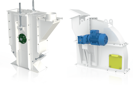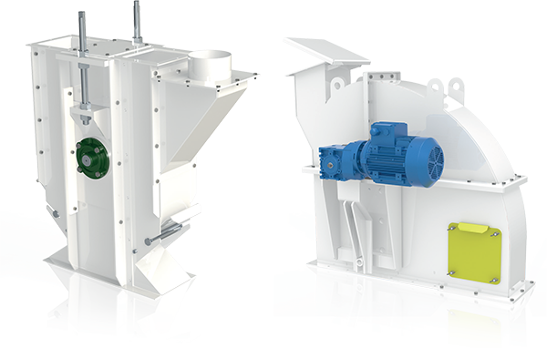 • A head and boot sections that are manufactured in rolled plate, appropriately reinforced and bolted together. The rolled plate is characterized by increased thickness in areas subject to wear with the possibility of special lining upon request. Heat and boot sections are easily removable for maintenance.